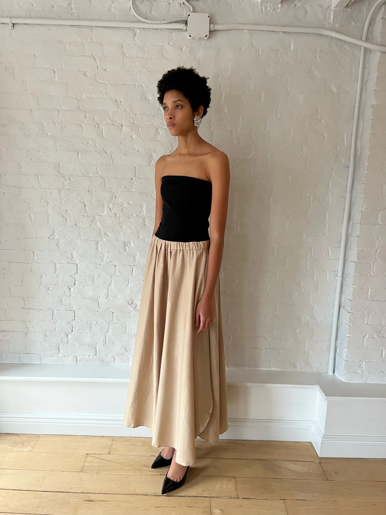 Strapless dress with attached full length skirt